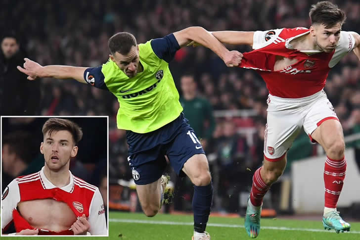 Bei einem wichtigen Fußballspiel wurde einem Spieler das Trikot von einem Gegner so fest gezogen, dass es riss und er plötzlich halb nackt auf dem Feld stand. Nikola Boranijasevic vom FC Zürich hat im letzten Gruppenspiel der Europa League im Emirates Stadium das Trikot seines Gegners vom Leib gerissen. Arsenals Kieran Tierney war ungläubig, nachdem ihm ein Gegner das Trikot zerrissen hatte.